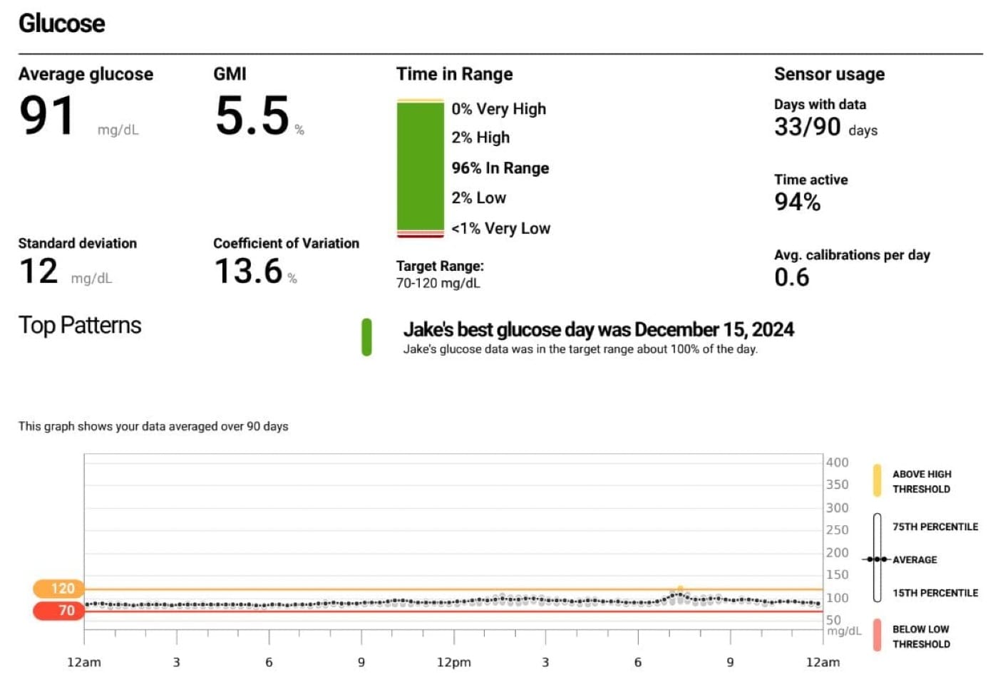 - TIR = 96% between 70-120 mg/dl